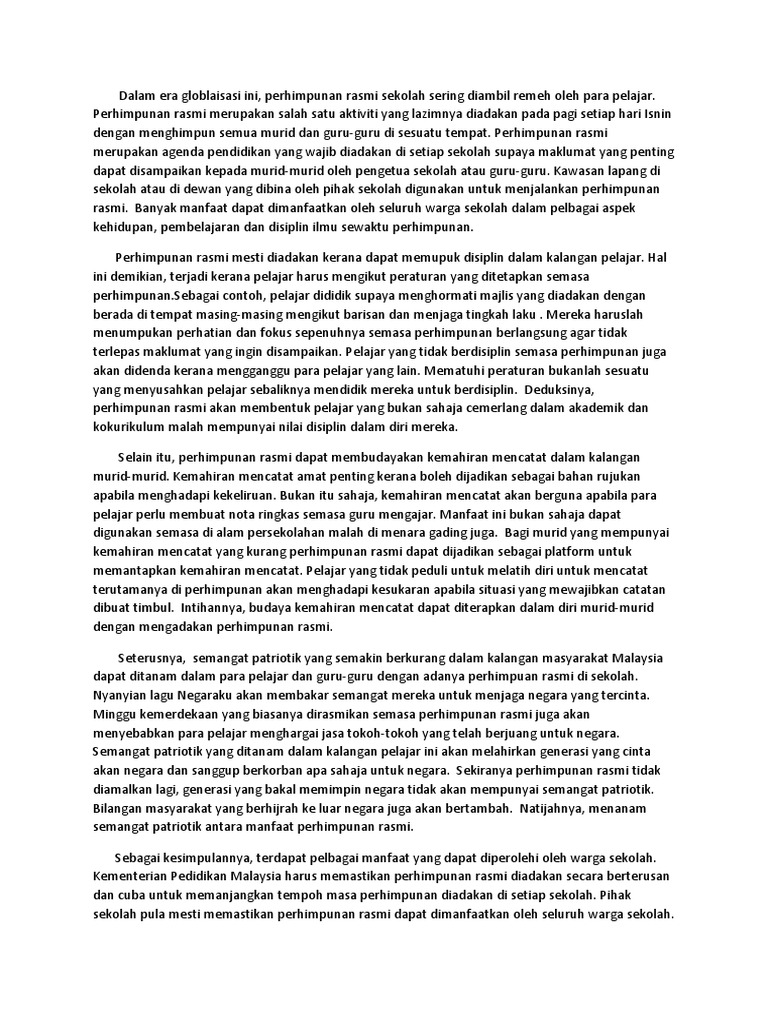 Contoh Karangan Kepentingan Perhimpunan Mingguan Rasmi Ask Manytutors